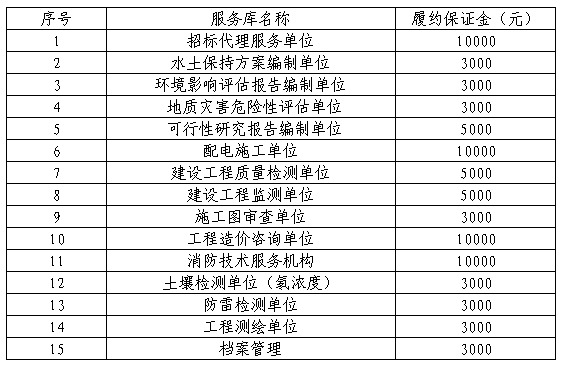 南平綠發(fā)集團有限公司因經(jīng)營需要,擬成立服務庫,現(xiàn)實施2023年服務庫招錄,本次招錄合作期三年,要求如下: 一、本次招錄類別及資格條件 本次共招錄15個類別服務庫,綠發(fā)集團及下屬公司在今后的工作中,在不違反有關法律、法規(guī)規(guī)定的前提下,結合集團服務庫管理辦法,從服務庫中選擇具體的服務單位。滿足資格的南平市市屬國企單位可直接入庫,入庫的南平市市屬國企單位家數(shù)包含在對應服務庫家數(shù)內(nèi)。若入圍家數(shù)少于3家不能形成有效竟爭的,集團公司將從庫外另行再邀請相應服務單位參與比選。本次具體類別及資格條件要求如下: 1. 招標代理服務單位(10家) 具備提供工程招標代理服務的企業(yè)法人單位。且根據(jù)《閩建筑函[2018]26號》的規(guī)定投錄人應當取得公司法人《營業(yè)執(zhí)照》(登記營業(yè)范圍須包含工程招標代理業(yè)務)且完成并通過福建省住房和城鄉(xiāng)建設政務服務系統(tǒng)登記企業(yè)基本信息。(提供營業(yè)執(zhí)照復印件加蓋公章、福建省住房和城鄉(xiāng)建設政務服務系統(tǒng)登記證明材料加蓋公章) 2. 水土保持方案編制單位(5家) 具備建設項目水土保持方案編制水平評價證書 1星及以上資質。(提供營業(yè)執(zhí)照和資質證書復印件加蓋公章) 3. 環(huán)境影響評估報告編制單位(5家) 具備環(huán)境影響評估報告編制能力,且在環(huán)境影響評價信用平臺登記的單位。同時不得被列入《建設項目環(huán)境影響報告書(表)編制監(jiān)督管理辦法》規(guī)定的限期整改名單、環(huán)境影響評價失信“黑名單”。(提供環(huán)境影響評價信用平臺登記證明材料加蓋公章、未被列入限期整改名單和環(huán)境影響評價失信“黑名單的證明材料) 4. 地質災害危險性評估單位(5家) 具備自然資源主管部門頒發(fā)的乙級及以上地質災害危險性評估單位資質。(提供營業(yè)執(zhí)照和資質證書復印件加蓋公章) 5. 可行性研究報告編制單位(6家) 具備可行性研究報告編制能力,且應是通過全國投資項目在線審批監(jiān)管平臺備案的工程咨詢單位(建筑工程、市政公用工程)專業(yè)。(提供通過全國投資項目在線審批監(jiān)管平臺備案相關信息截圖、營業(yè)執(zhí)照復印件、資質證書復印件加蓋公章) 6. 配電施工單位(5家) 具備建設行政主管部門頒發(fā)的電力工程施工總承包或送變電工程專業(yè)承包三級及以上資質,并已通過南平電業(yè)局入網(wǎng)審查。(提供資質證書復印件、通過南平電業(yè)局入網(wǎng)審查證明材料加蓋公章) 7. 建設工程質量檢測單位(6家) 具備建設行政主管部門頒發(fā)的建設工程質量檢測資質。(提供營業(yè)執(zhí)照復印件和資質證書復印件加蓋公章) 8. 建設工程監(jiān)測單位(6家) 具備建設行政主管部門核發(fā)的合格有效的工程勘察專業(yè)類(巖土工程物探測試檢測監(jiān)測)乙級及以上資質或工程勘察綜合甲級資質。(提供營業(yè)執(zhí)照復印件和資質證書復印件加蓋公章) 9. 施工圖審查單位(5家) 具備建設行政主管部門頒發(fā)的二類及以上施工圖審查資質證書。(提供營業(yè)執(zhí)照復印件和資質證書復印件加蓋公章) 10.工程造價咨詢單位(6家) 具備提供工程造價咨詢服務的企業(yè)法人單位。且根據(jù)《閩建筑函[2021]60號》的規(guī)定投錄人應當取得具有工程造價咨詢經(jīng)營范圍的營業(yè)執(zhí)照且完成并通過福建省住房和城鄉(xiāng)建設政務服務系統(tǒng)登記企業(yè)基本信息。(提供營業(yè)執(zhí)照復印件、福建省住房和城鄉(xiāng)建設政務服務系統(tǒng)截圖加蓋公章) 11.消防技術服務機構(6家) 符合《應急管理部關于印發(fā)〈消防技術服務機構從業(yè)條件〉的通知》的消防技術服務機構(建筑消防設施維護保養(yǎng)檢測)。(提供營業(yè)執(zhí)照復印件、福建省消防技術服務信息平臺的截圖證明等相關證明材料加蓋公章) 12.土壤檢測單位(氡濃度)(5家) 具備市場監(jiān)督管理部門頒發(fā)的具有CMA標志的資質認定證書。(提供營業(yè)執(zhí)照復印件和資質證書復印件加蓋公章) 13.防雷檢測單位(6家) 具備氣象主管機構頒發(fā)的雷電防護裝置檢測資質。(提供營業(yè)執(zhí)照復印件和資質證書復印件加蓋公章) 14.工程測繪單位(6家) 具備行業(yè)主管部門頒發(fā)的工程測繪資質。(提供營業(yè)執(zhí)照復印件和資質證書復印件加蓋公章) 15.檔案管理(5家) 具備行業(yè)主管部門頒發(fā)的福建省檔案服務機構備案證明(提供營業(yè)執(zhí)照復印件、福建省檔案服務機構備案證明材料加蓋公章) 二、招錄須知: 1. 招錄報名時間:2023年07月17日至2023年07月21日止,逾期不予受理。 2. 招錄報名:有意向的單位于報名時間將以下資料發(fā)至郵箱864794732@qq.com ,否則招錄人有權拒絕其報名。 (1)法定代表人身份證明、法定代表人身份復印件加蓋單位公章或其授權委托書、被授權人的身份證復印件(加蓋單位公章); (2)營業(yè)執(zhí)照(加蓋單位公章); (3)附件一(報名函); (4)投錄保證金轉賬憑證加蓋公章。 單位負責人為同一人或者存在控股、管理關系的不同單位,不得參加同一類別的同一庫項目投錄。 3. 投錄文件遞交方式及遞交時間: 遞交時間:2023年7月24日,上午8:30-11:30,下午15:15-17:30。 遞交地址:福建暉源工程